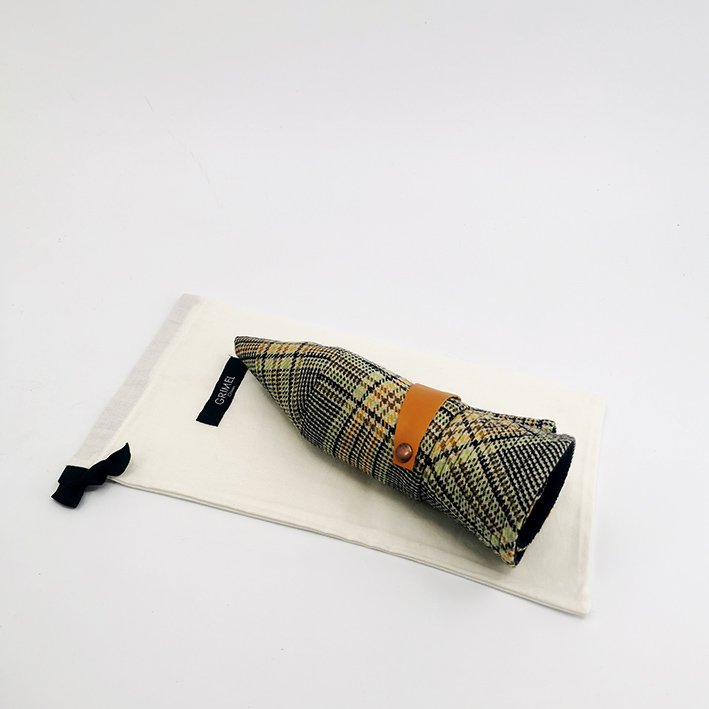 La matière principale en laine offre un toucher doux et chaud. La patte au dos en cuir ambre apporte une touche chic et contraste avec le motif chargé du carreau. Le rivet GRIMEL sur le devant gauche signe l’identité de la marque avec discrétion. Entièrement doublé en coton noir, le bob assure un confort optimal et une finition soignée. L’entrée de tête resserrable permet un ajustement parfait pour toutes les morphologies. L’ensemble dégage un charme rétro-modernisé, élégant mais détendu, parfait pour un look urbain et travaillé.