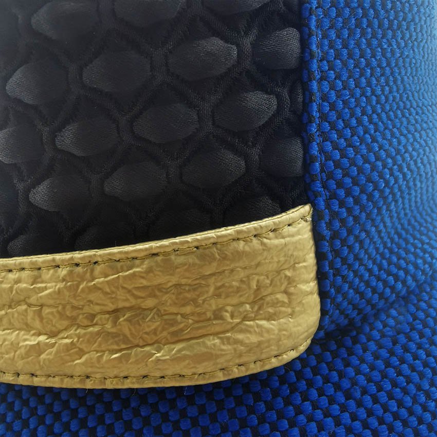 Le bob pliable bleu JENA adopte une forme JENA précise, pensée pour conserver une ligne claire tout en restant souple. Le tissu principal en polycoton bleu, légèrement texturé, capte la lumière et crée une apparence nette et contemporaine. De plus, sa patte dos en vinyle doré introduit une note chic qui contraste avec le bleu, ce qui apporte une tension esthétique intéressante. Le rivet GRIMEL sur le côté gauche renforce l’identité de la pièce, tout en soulignant une présence discrète mais affirmée.