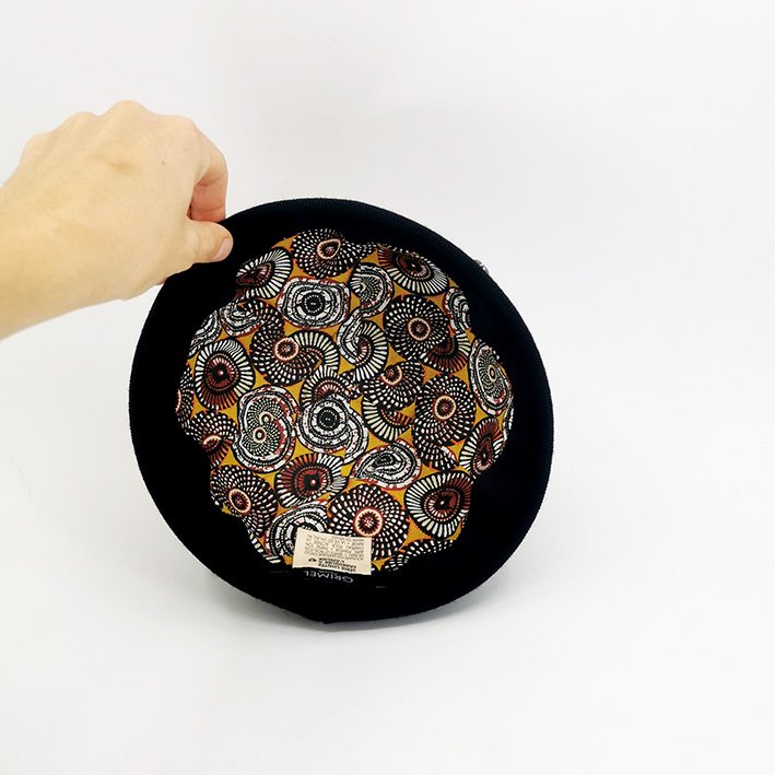 Sous sa calotte en drap de laine chaude se cache une doublure en coton wax, vibrante, colorée et unique : un secret que toi seul connais.