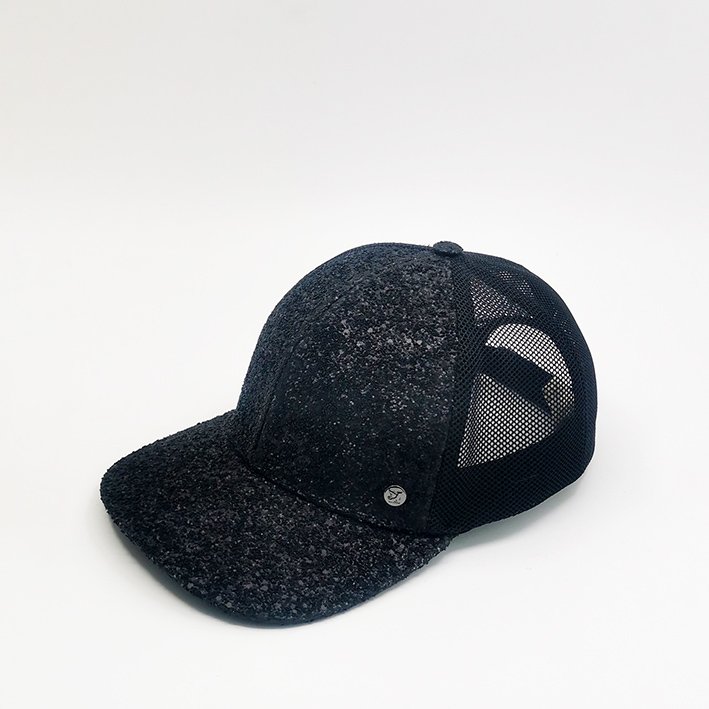 La casquette trucker noire PAOLO incarne cette élégance moderne que l’on porte sans réfléchir, mais qui attire tous les regards. Car elle est pensée pour ceux et celles qui aiment glisser entre deux mondes. Celui de la ville et de la nuit. Ainsi, elle joue sur la subtilité des textures et des contrastes. Et avec sa calotte avant renforcée et sa texture pailletée mate, elle évoque un éclat contenu, presque secret. Alors que Le mesh noir à l’arrière assure la respirabilité et ajoute une touche technique, le devant pailleté s'oppose au dos. Puis la patte de serrage en cuir embossé STUDIO GRIMEL signe son identité singulière.