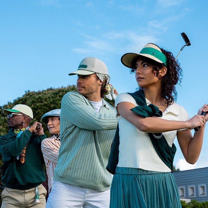 Entre deux birdies et des fous rires, l’ombre légère de ta casquette te suit fidèlement. Elle reste bien en place, protège sans étouffer, et apporte ce twist vintage à ton look sport. Tu la portes parfois sur un foulard noué, pour un effet stylé décalé.