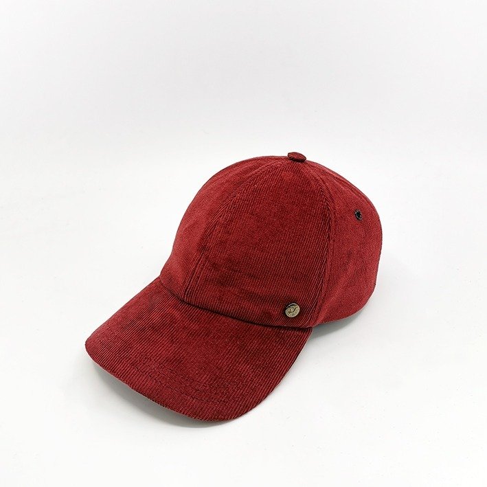 Le velours milleraies bordeaux, c’est le héros silencieux de cette casquette. Doux, texturé, il capte la lumière sans jamais en faire trop. Sur les panneaux arrière, quatre œillets noirs ajoutent un discret contraste, presque un clin d’œil à l’univers musical dont STUDIO GRIMEL aime s’inspirer.