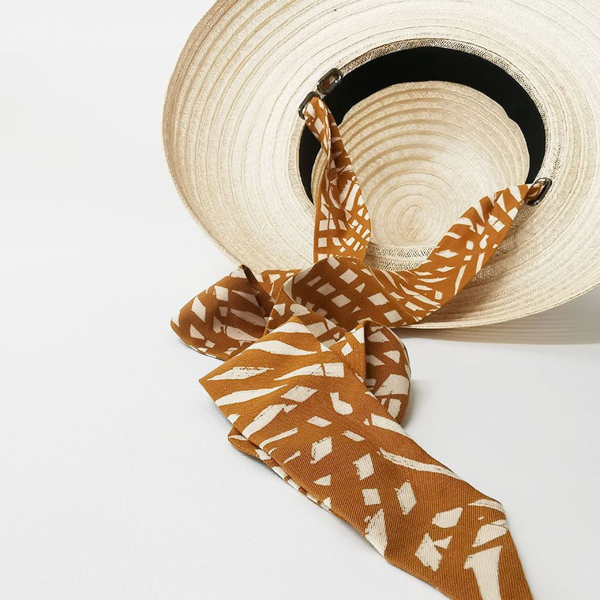 Imagine-toi à Arles, en plein été, pour les Rencontres de la Photographie. Tu sors d’une expo vibrante, le soleil écrase la ville, et toi, tu marches le long du Rhône. Ton chapeau cloche vissé sur la tête, foulard imprimé noué dans les cheveux. Tu t’arrêtes à une terrasse ombragée, commandes un café glacé, et tu sors de ton sac le second ruban, celui aux teintes pastel. Juste pour le plaisir de le nouer à ton poignet. Ce chapeau ne te protège pas seulement du soleil. Il participe au récit de ta journée, il en devient le témoin stylé.