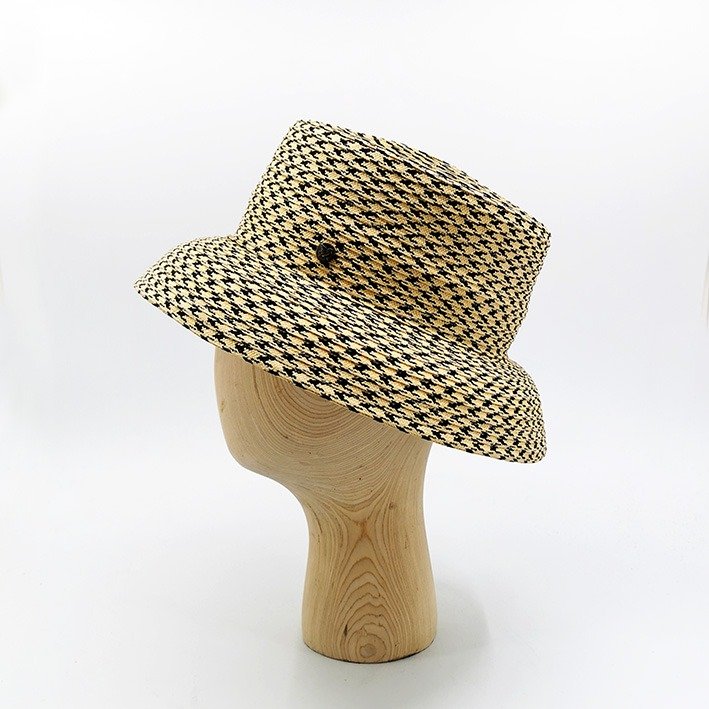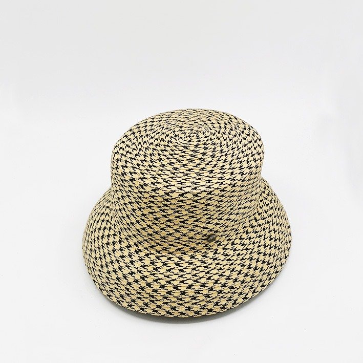 Base du chapeau en paille cousue de poly-coton motif pied de poule