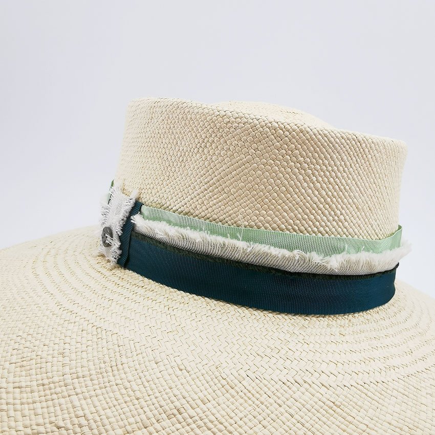 Et comme les détails ont leurs importances, notre chapeau est garni de trois gros-grains, tout en nuances de vert et effilochés.