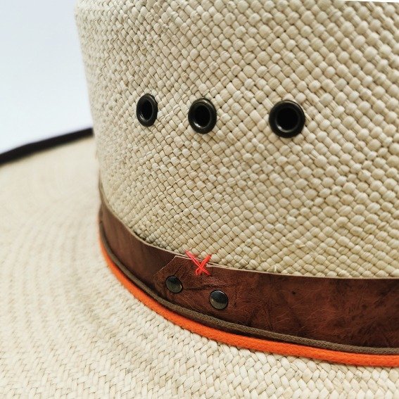 Et puis côté style, son tour en cuir texturé une touche vintage au style chic de la paille panama. Les détails des points main, les cordons coloré orange donnent une touche POP supplémentaire. Un combo gagnant entre voyage chic et modernité folk.