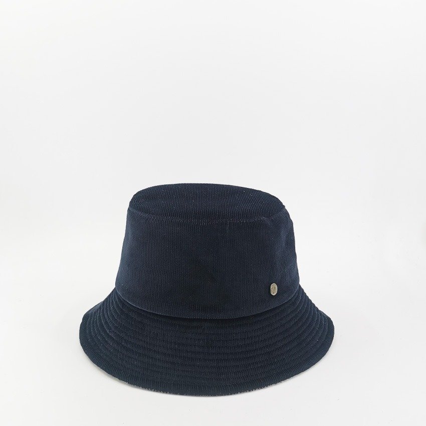 Chapeau pliable marine en velours de coton milleraies