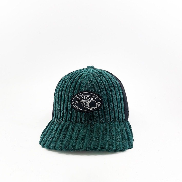 Devant de casquette et dessus visière en velours de coton vert anglais.